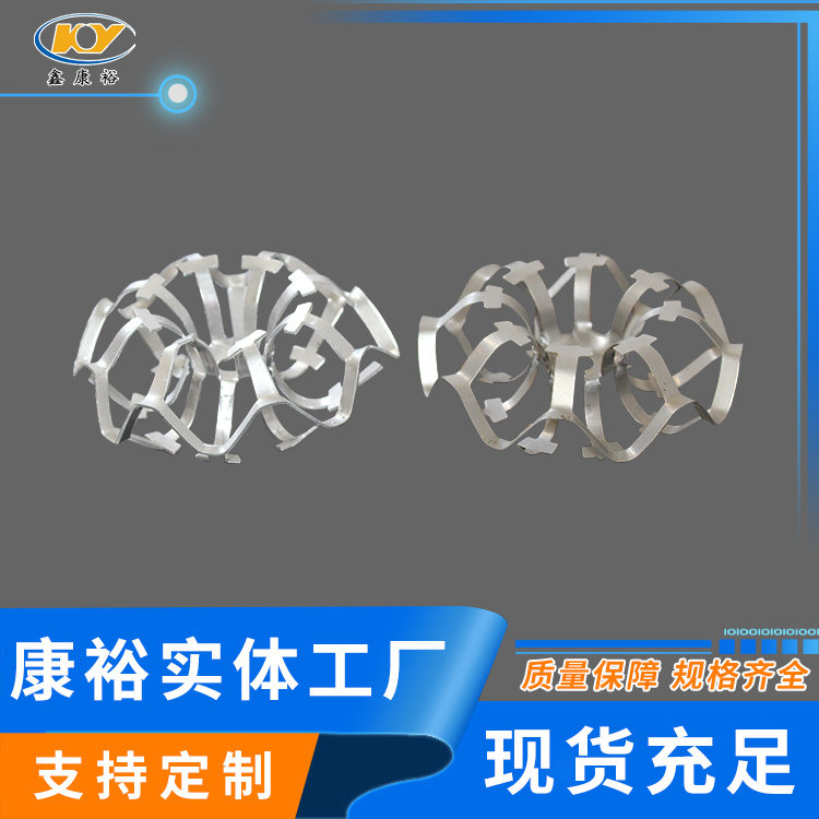 DN95鋁合金花環(huán)填料公司新研發(fā)的金屬花環(huán)填料(鋁花環(huán),鋁合金、不銹鋼花環(huán))材質(zhì)主要包括碳鋼、鋁合金及不銹鋼等。由于其壁薄,空隙率大,通量大,阻力小,分離效果好,特別適真空精餾塔,處理熱敏性,易分解,易聚合,易結(jié)碳的物料。如煤氣脫水器采用鋁花環(huán)填料,應(yīng)用后傳質(zhì)效率好,脫水,機械水含量≤20g/m3,并滿足高爐熱風(fēng)爐的要求。